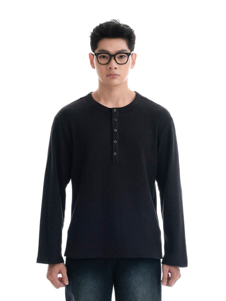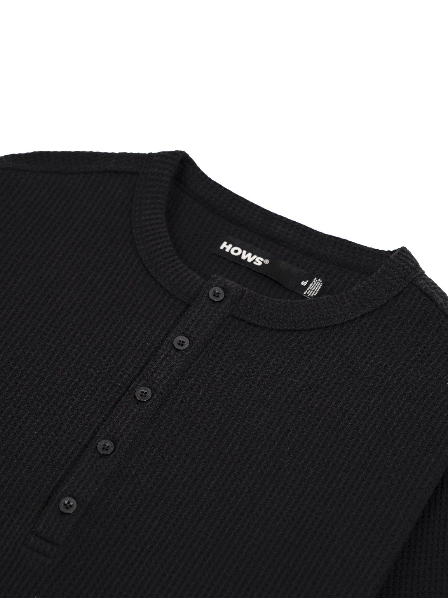 HOWS® WAFFLE LONG SLEEVE HENLEY / BLACK