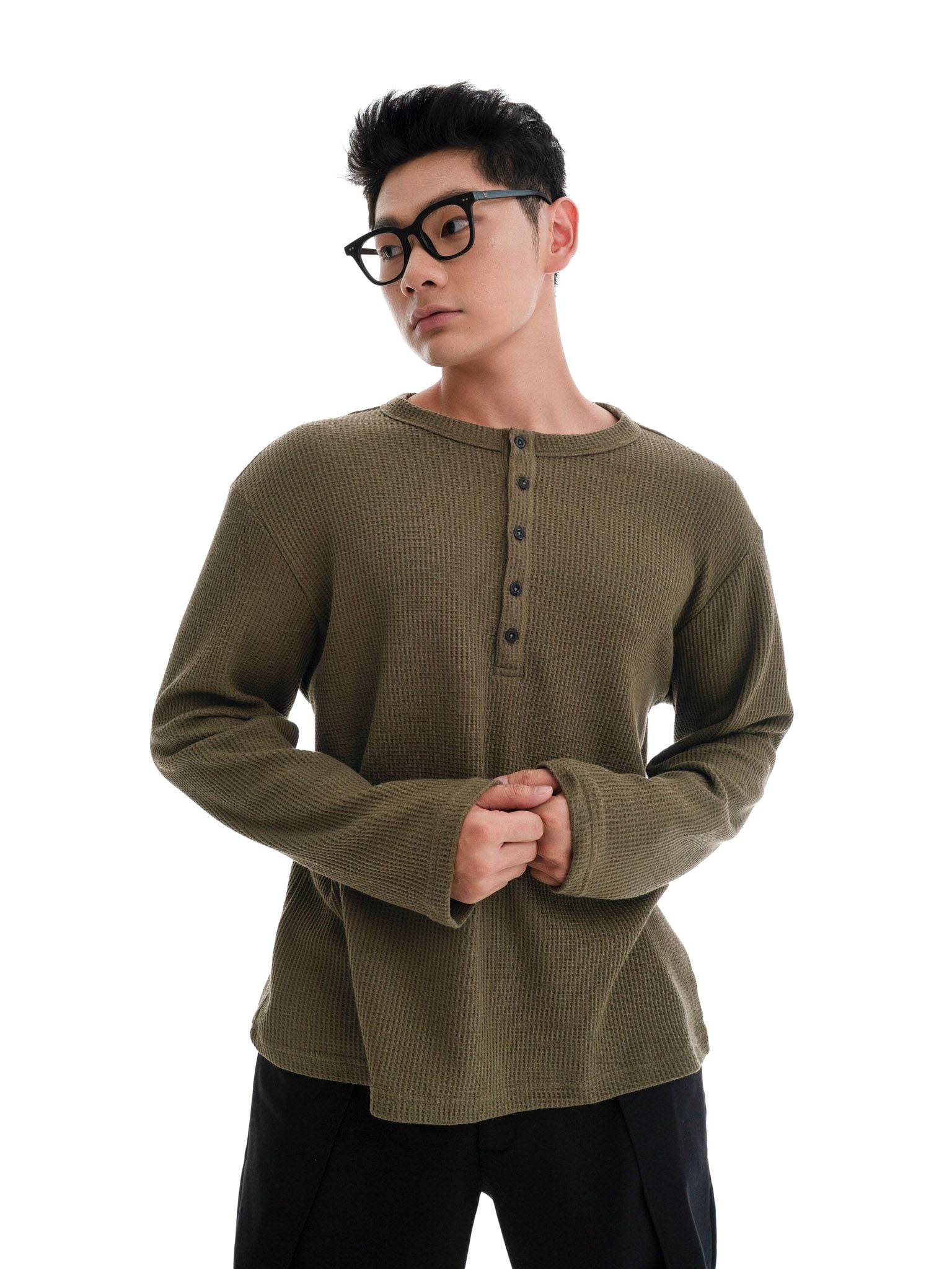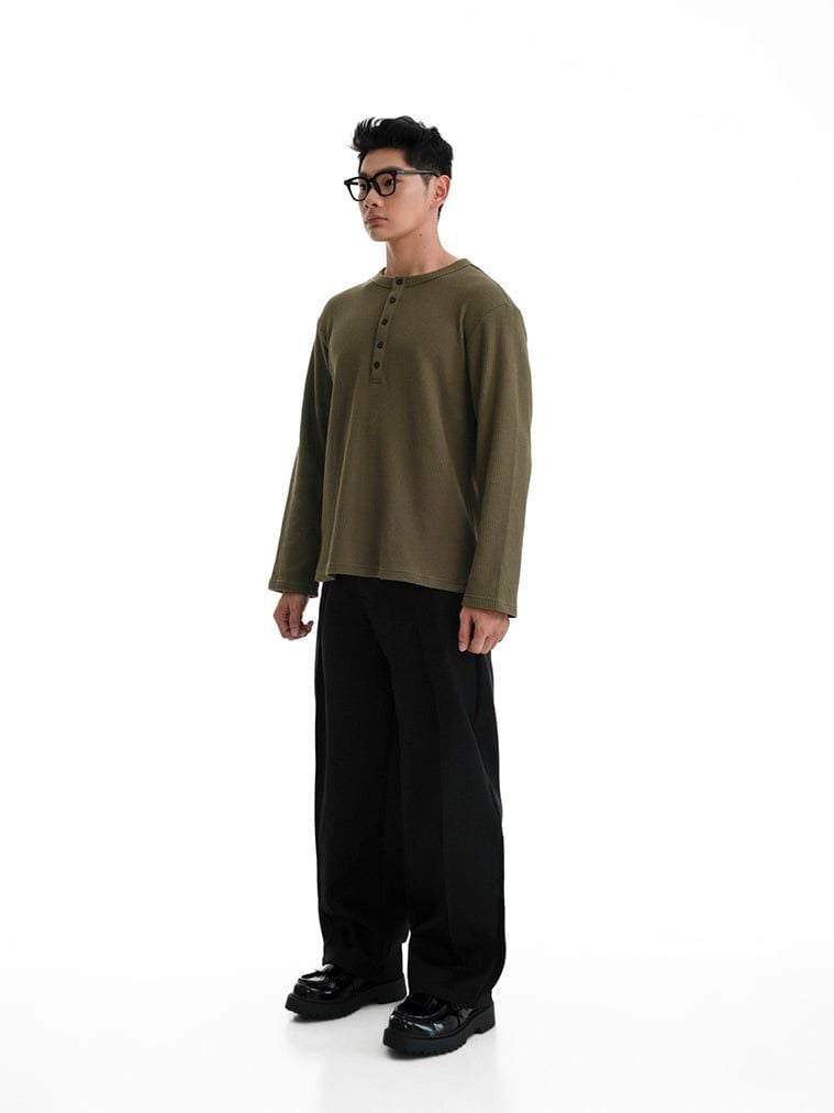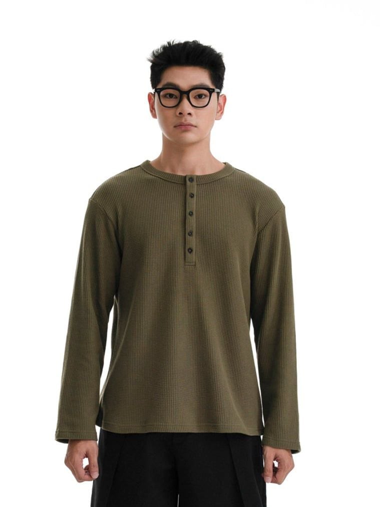 HOWS® WAFFLE LONG SLEEVE HENLEY / MOSS